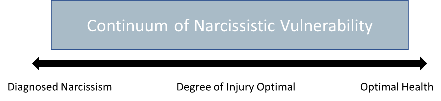 The concept of narcissistic injury is understood on a continuum where the degree of injury correlates to levels of fragility and vulnerability, all of which interfere with spontaneity, resilience, and authentic self-emergence.
